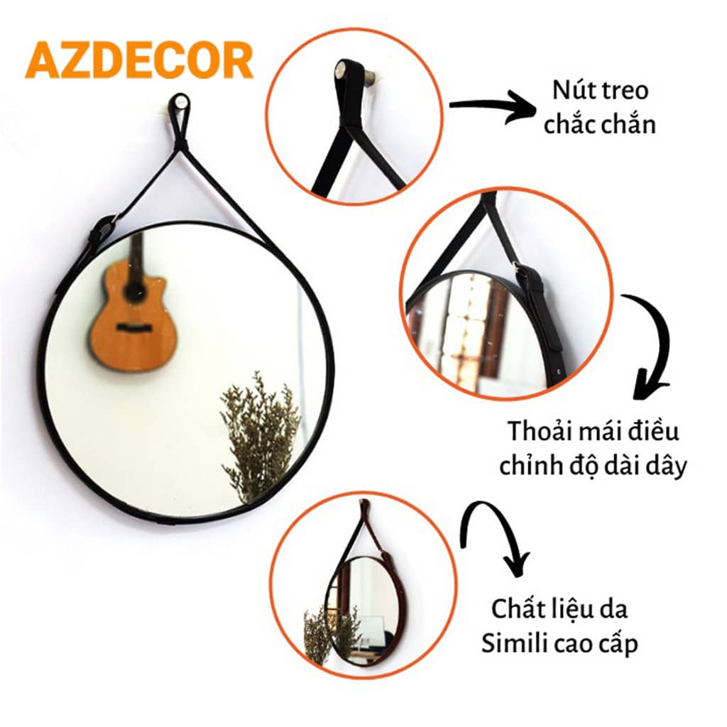 ✔️ Trọn bộ sản phẩm bao gồm gương tròn treo tường, dây da và vít treo
