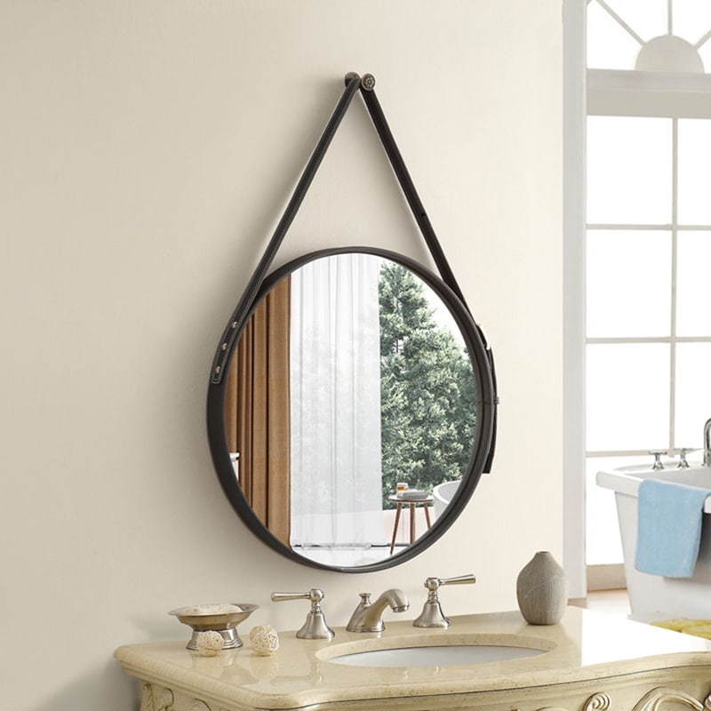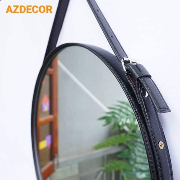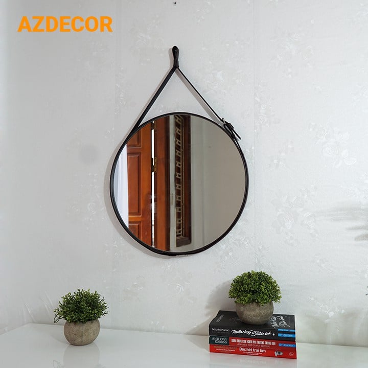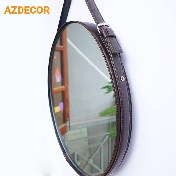Be the first to review “Gương tròn dây da simili cao cấp”
