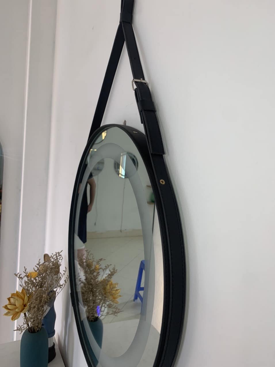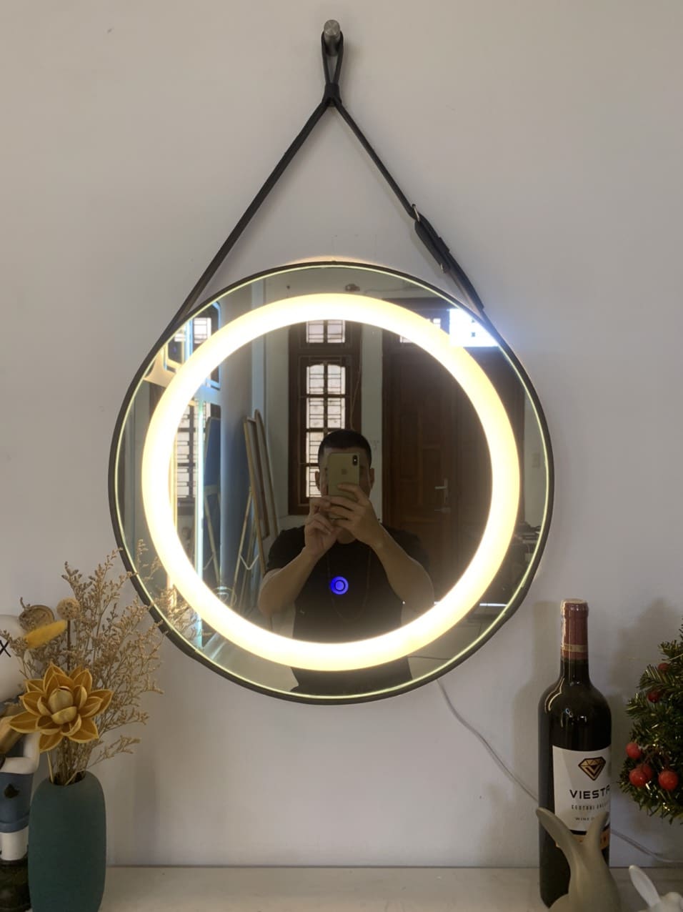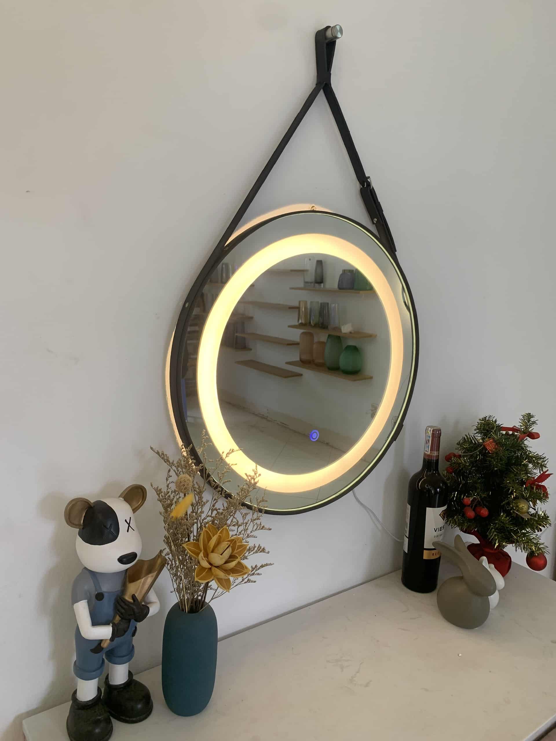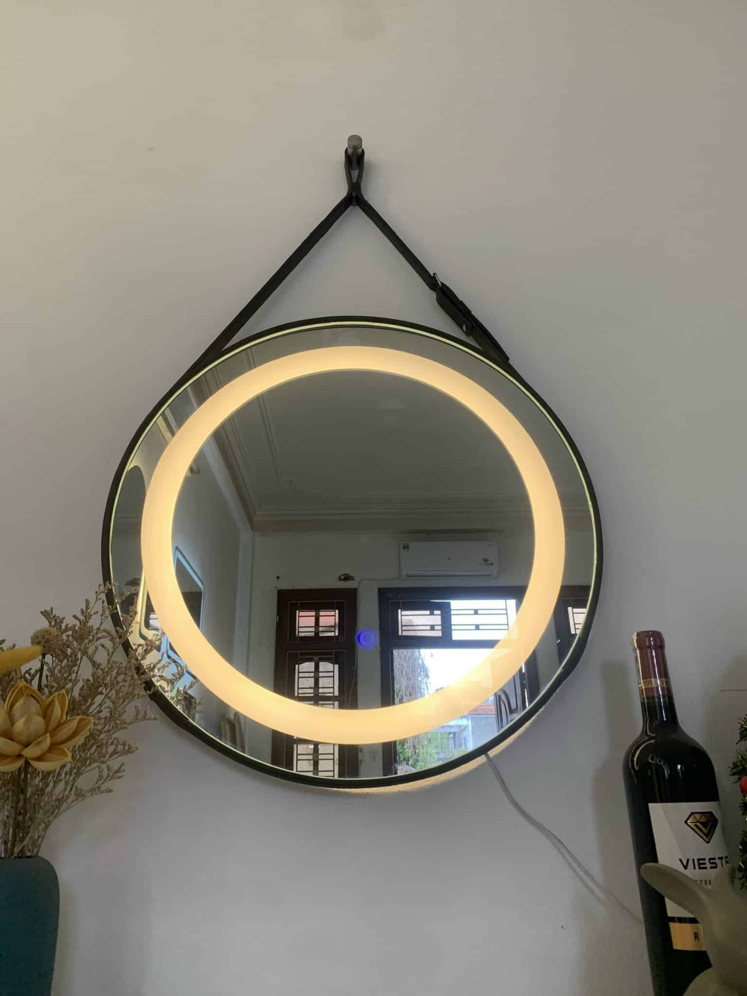 Gương tròn đèn led dây da là gương tròn được bọc dây da simili cao cấp có gắn thêm hệ thống đèn led. Gương sẽ góp phần tạo ánh sáng dịu nhẹ của đèn led giúp căn phòng của bạn thêm sang trọng và lịch sự.