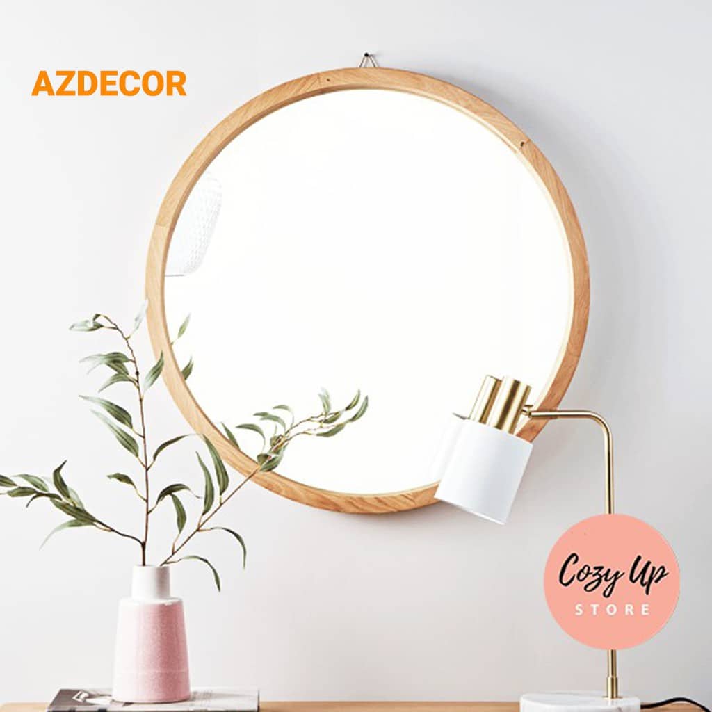 Gương trang điểm, gương tròn treo tường viền gỗ đường kính tự chọn